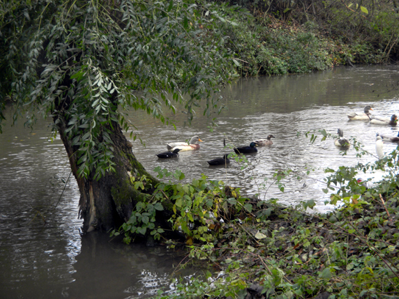 Beschreibung: Warum schweben die Weiden? Was ist der Grund für ihre fast stelzenartigen Wurzeln? Eine Erklärung wäre der unterschiedliche Wasserstand der Werre an dieser Stelle. Wenige Meter flußabwärts befindet sich das Stauwehr der Zuckerfabrik. Wenn die Rübenverarbeitung läuft - von September bis Anfang Januar - ist die Werre aufgestaut (siehe zweites und drittes Bild). In den anderen Monaten ist das Wehr offen und der Wasserstand niedrig.